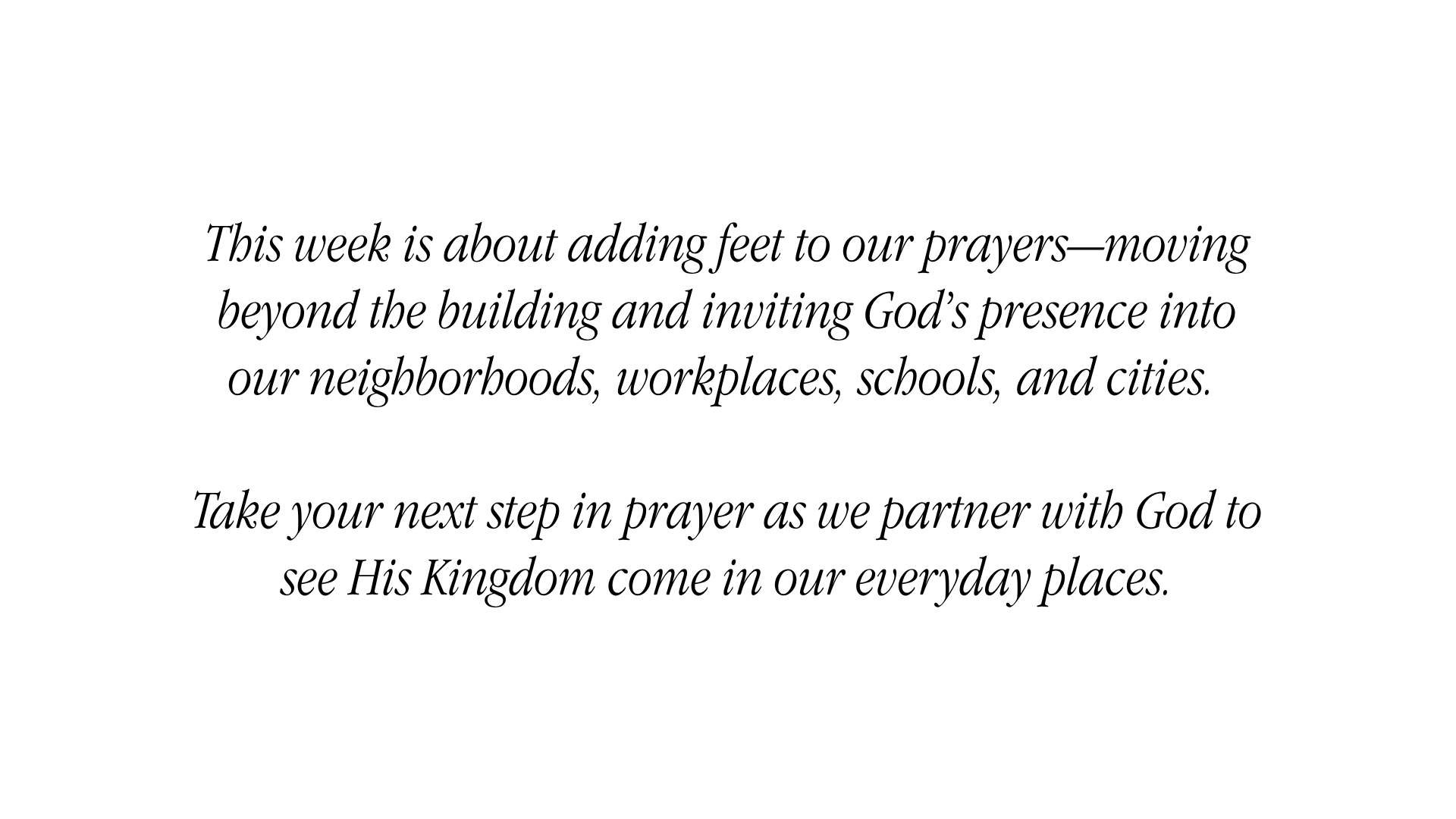 Join us from April 26th to May 2nd as we go pray –– carrying His presence wherever we are.